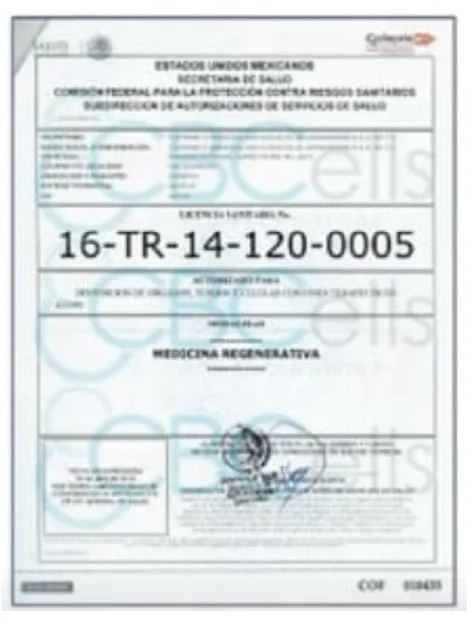 El corporativo cuenta con todas las licencias sanitarias necesarias para investigación, desarrollo y aplicación de tratamientos de cualquier procedencia celular: